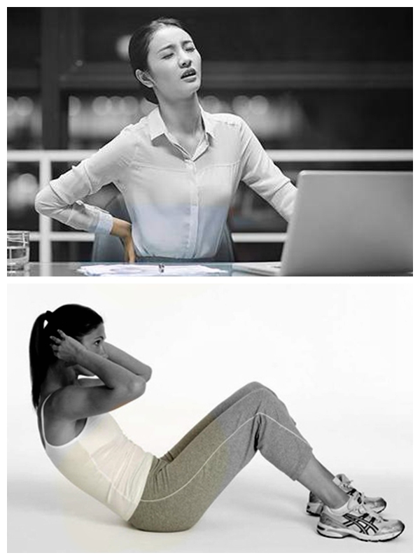 久坐不动让颈椎和腰椎都承受了较大的压力,低着头、弯着腰者更甚。做完仰卧起坐后,承受压力的颈椎和腰椎将再次受到压迫,加重受损程度。