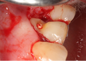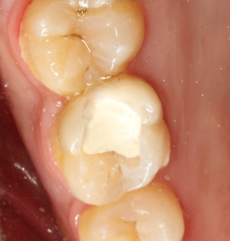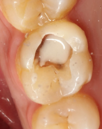 图1 去除软龋后的情况,洞较深,但是没有涉及牙髓