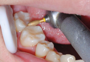 图3 消毒后,洞底接近牙髓的部位放置盖髓剂,