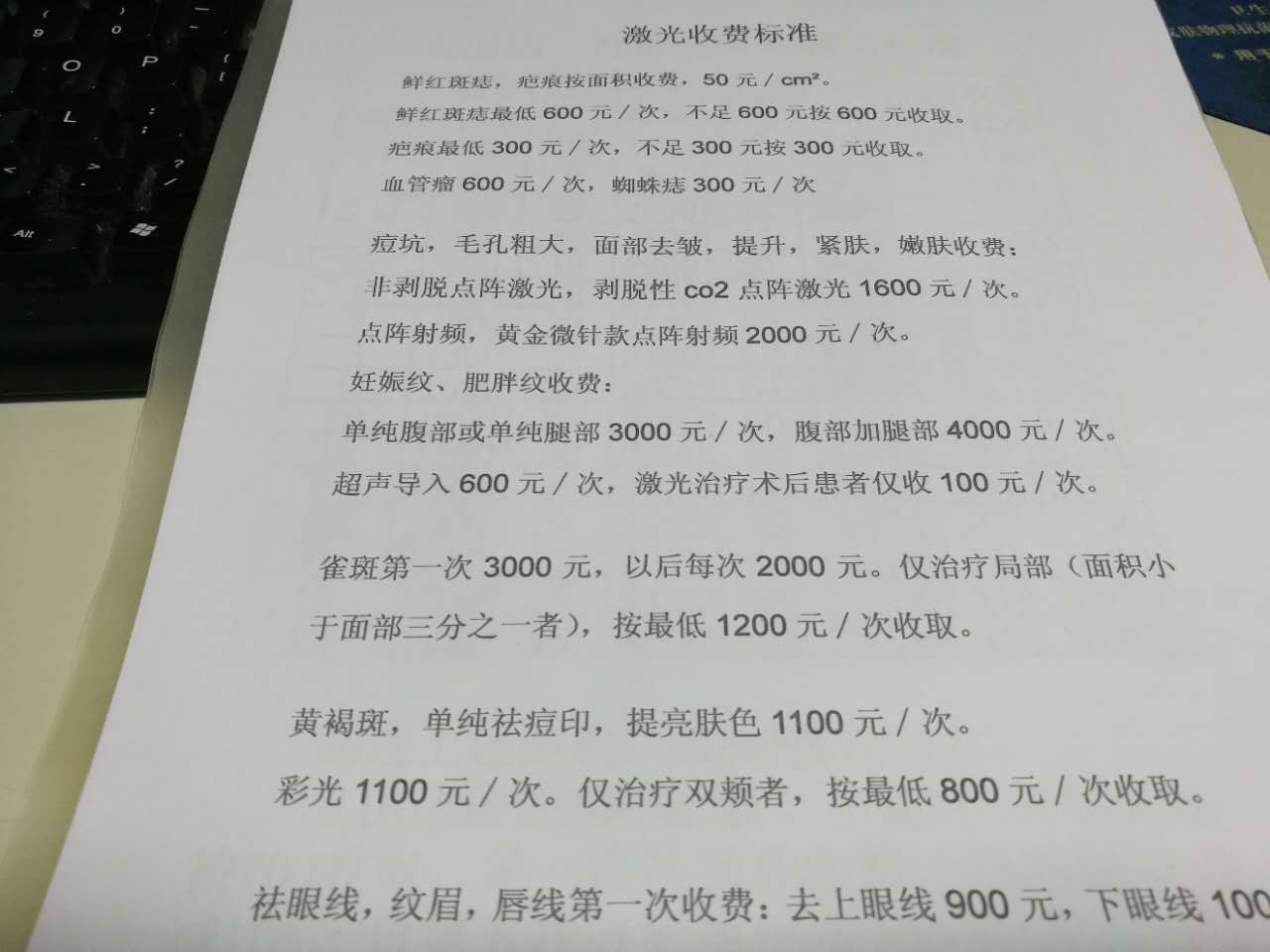 很多人问我们科的激光收费标准,这个很难几句话说得清,现将我们科现在的收费标准直接上传,以供大家参考,当然收费标准任何时间都有可能改变的,如果改变,我们也将第一时间修改上传。