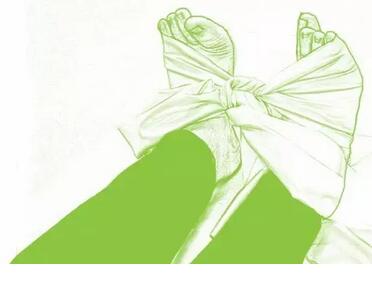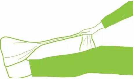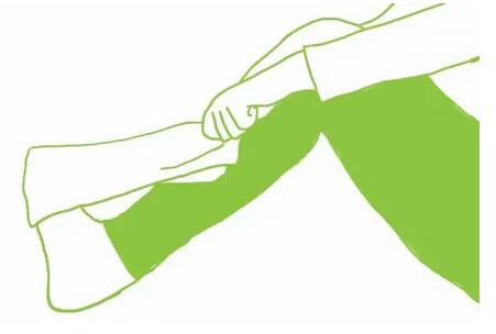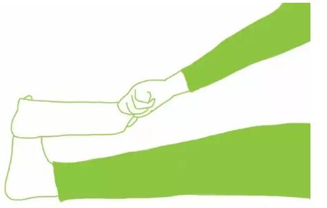 坐位,微屈膝,对折毛巾,套在受伤足上端,两手慢慢牵拉毛巾,感觉腓肠肌的下半部分和足跟绷紧。