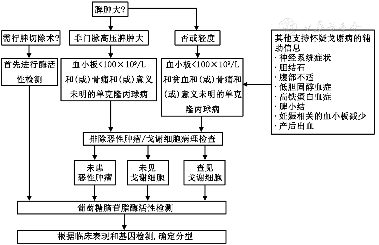 过去,戈谢病的治疗以对症治疗为主,属非特异性治疗。近年来,随着分子遗传学及生物工程技术的发展,已研发并临床应用了戈谢病的ERT。ERT特异性地补充患者体内缺乏的酶,减少葡萄糖脑苷脂在体内的贮积,为戈谢病的特异性治疗。