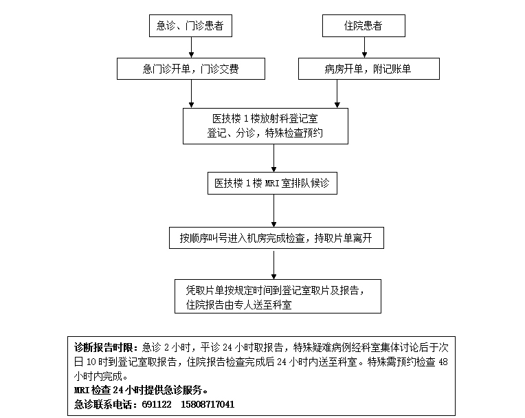 2、住院患者:请到医技楼8楼登记和接受检查,检查时间为每周一~周五08:00~12:00,14:00~18:00。其它时间(含节假日)请到门急诊综合楼4楼登记和接受检查。
